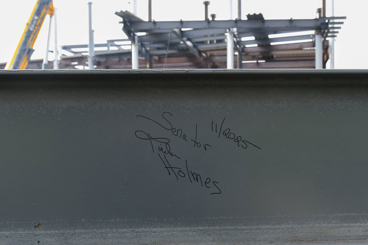 AURORA – Senator Linda Holmes joined a ceremony on November 21 at the future site of the new Learning Commons facility on the Aurora University campus. She joined Aurora University President Susana Rivera-Mills and other officials to sign their names on a beam that will be part of the structure as it is built.